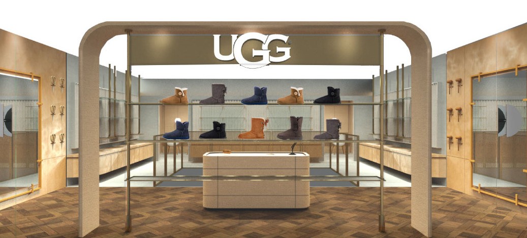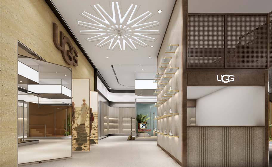 We deconstructed the existing elements of UGG, emphasizing curved arcs in spatial design, and incorporated various shades of brown and beach-themed design imagery.