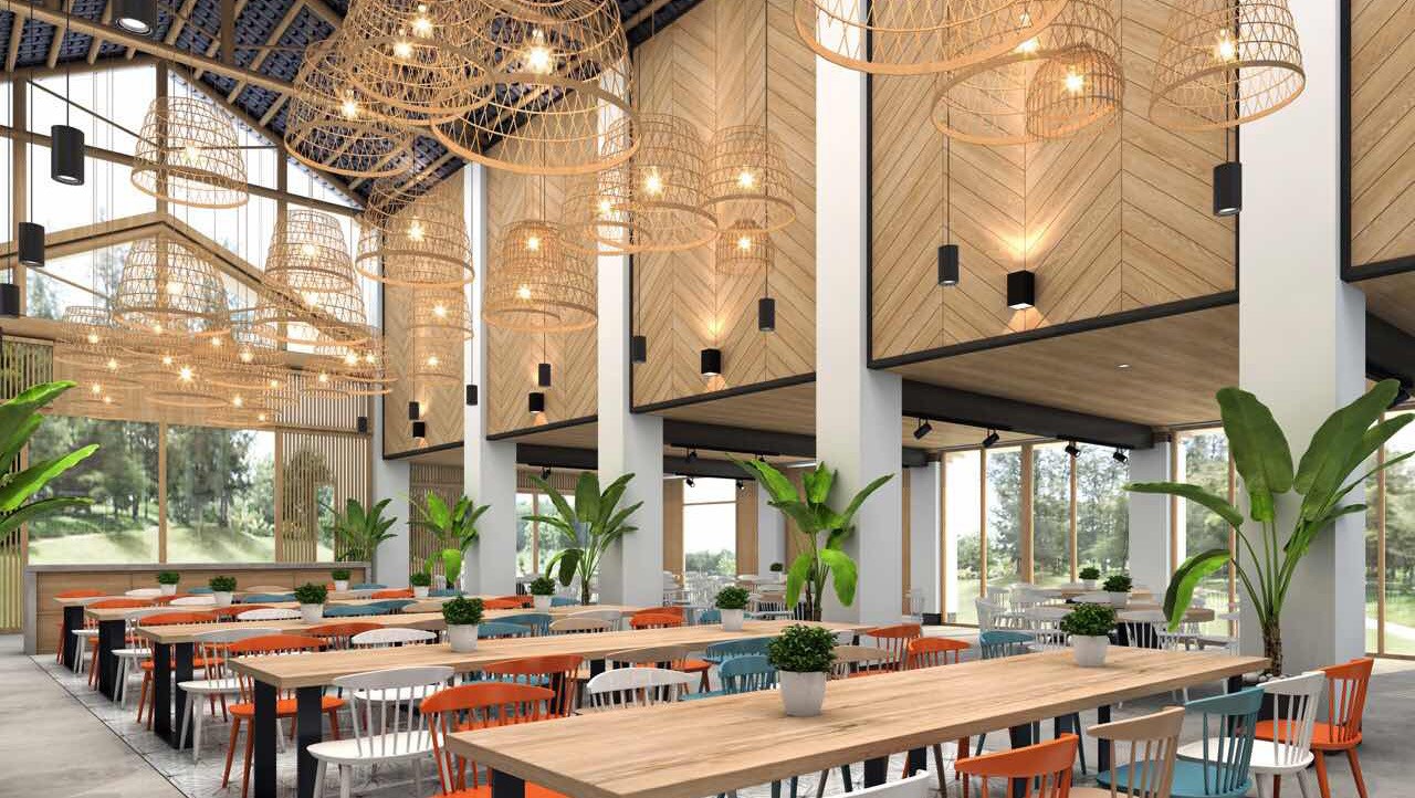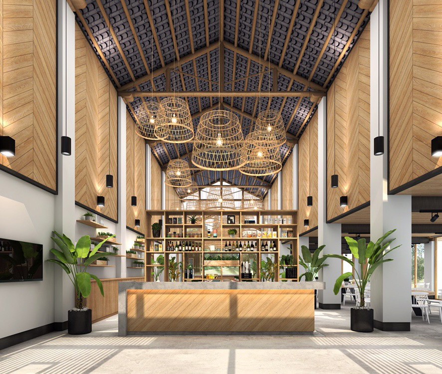 Combining the local golden ginkgo leaves with the vacation style of Bali Island, the intention is to deconstruct the ginkgo leaves into geometric patterns and transform them into spatial pattern designs.