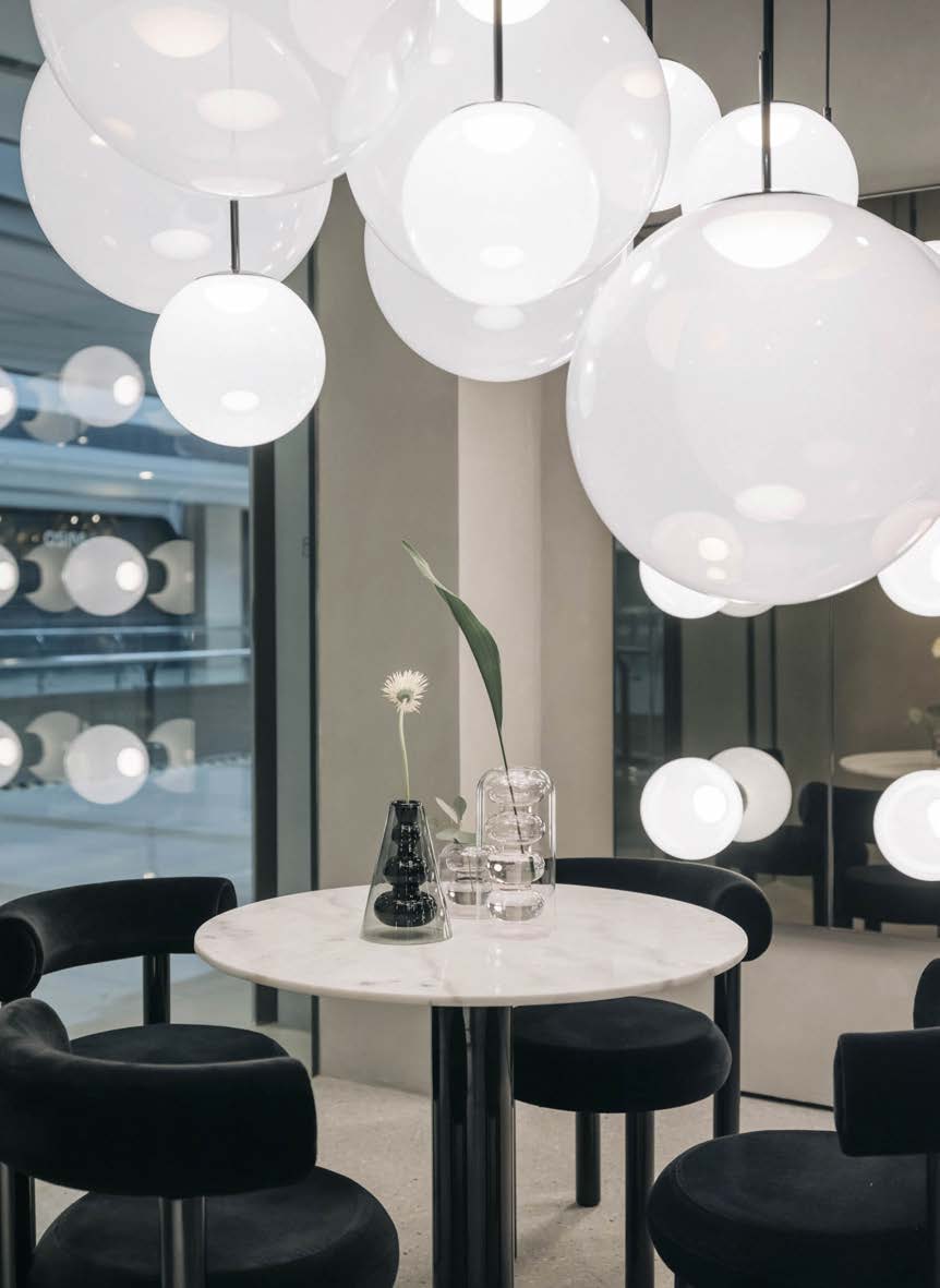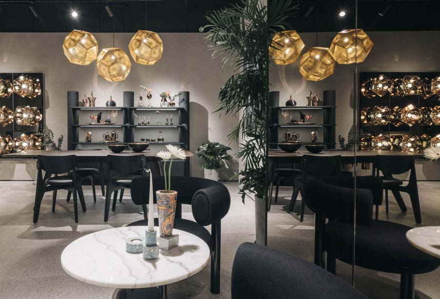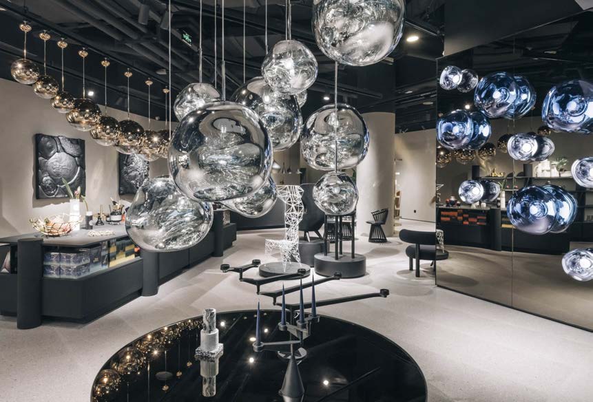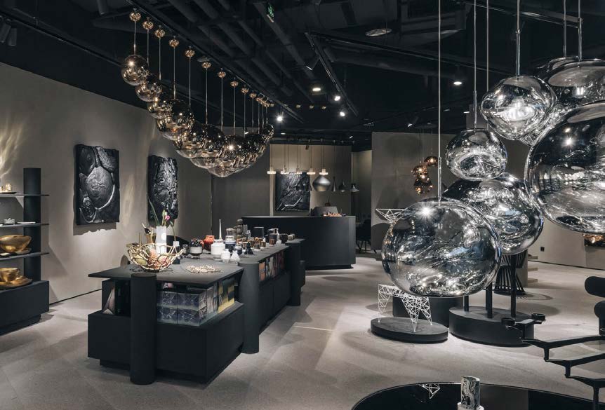 Tom Dixon's designs often showcase an industrial aesthetic, incorporating the use of metal materials such as copper, brass, and chrome, which provide a unique texture and warm luster. Emphasis is typically placed on shapes, lines, and textures in the designs, contributing to the creation of comfortable, functional spaces. The ambiance of the store aims to reflect a sense of modern luxury, with each detail meticulously designed and crafted to convey the brand's unique value to customers. Furthermore, Tom Dixon's design concepts also embody a commitment to sustainability, frequently employing sustainable and recycled materials while prioritizing energy efficiency and minimizing environmental impact throughout the manufacturing process.