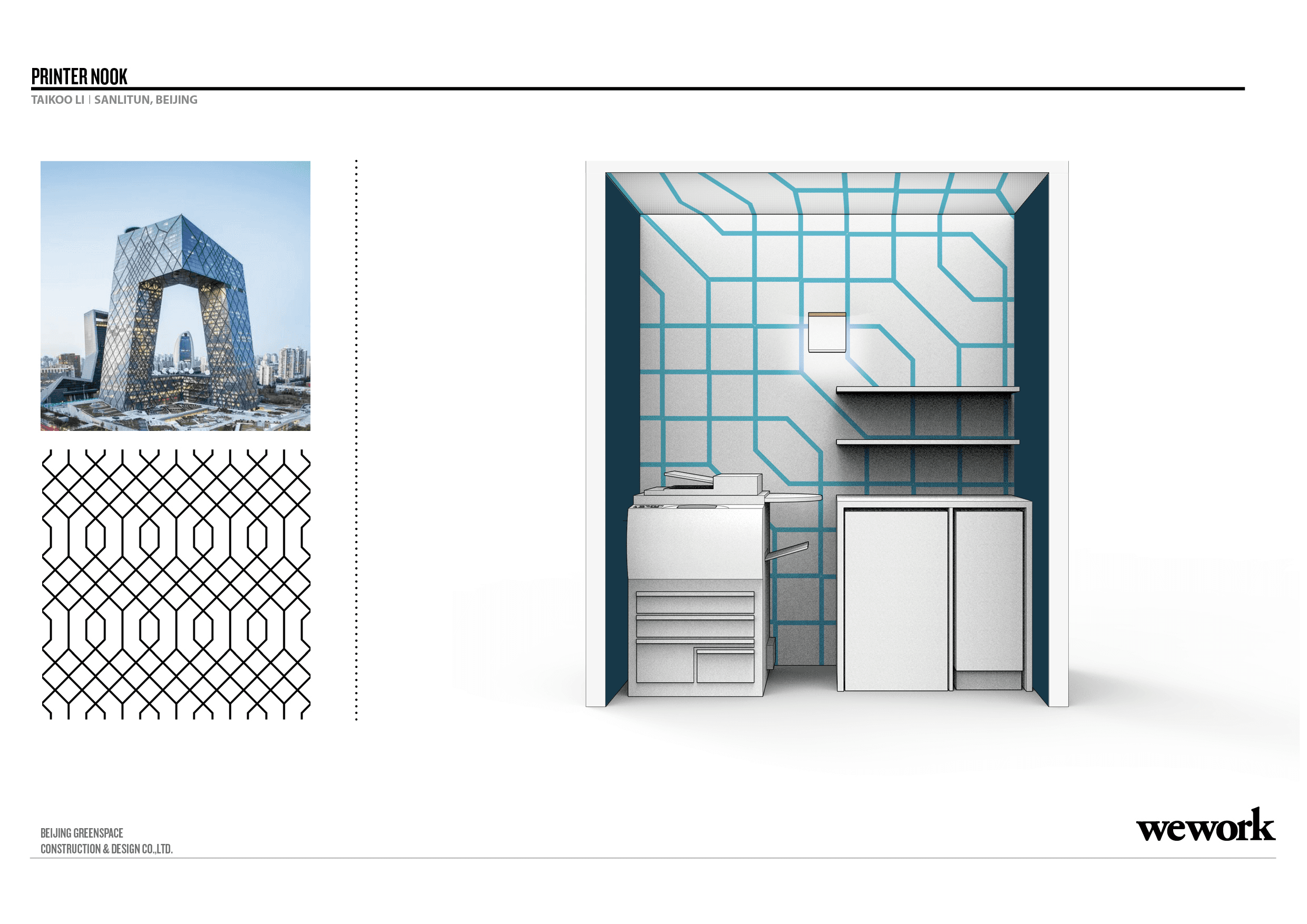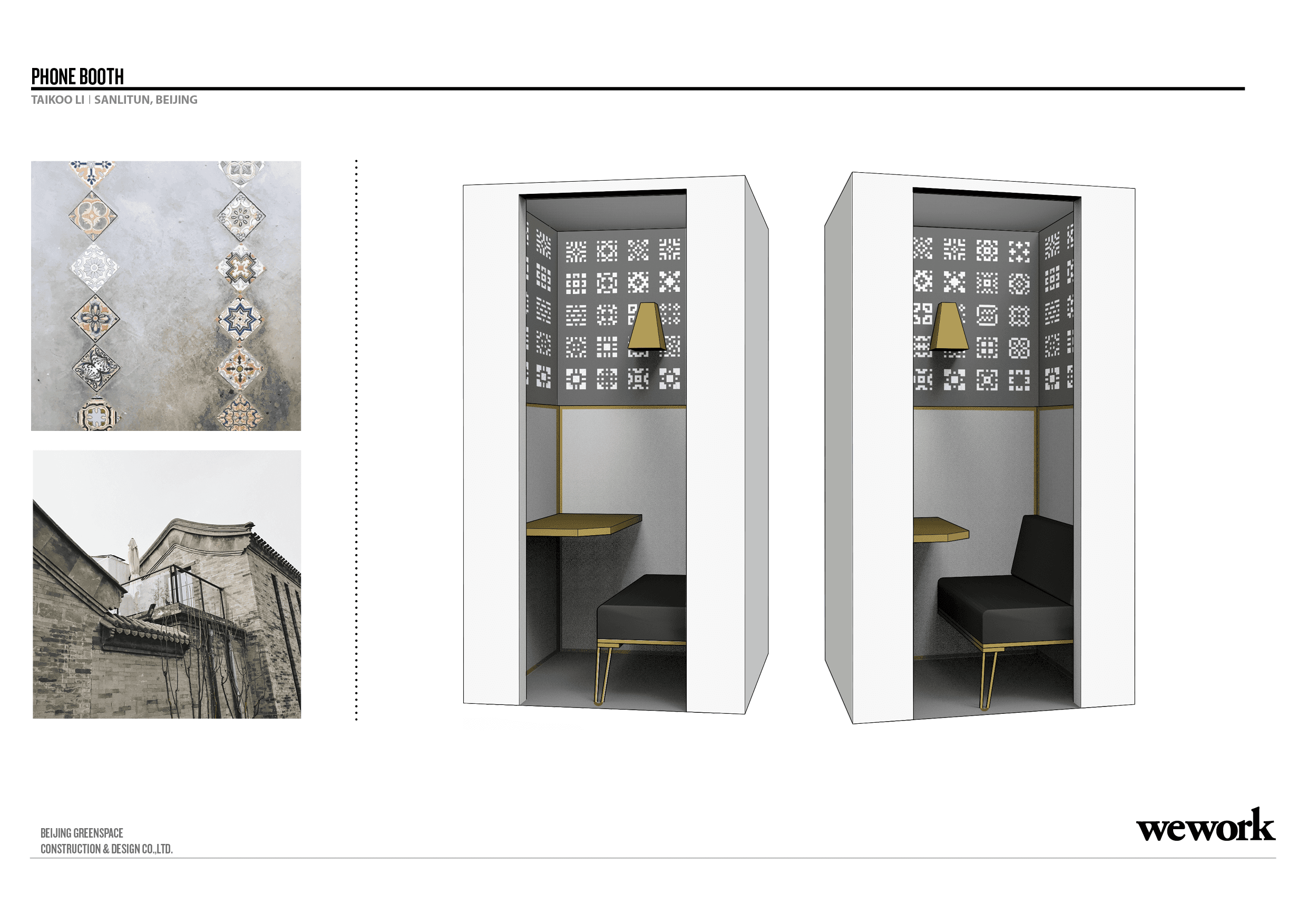 As one of the most popular places in Beijing, Sanlitun is a melting pot of culture, fashion, architecture, and people with WeWork settling in one of Sanlitun's most prominent developments, Taikoo Li. This is a great opportunity to celebrate the fusion between the culture of WeWork and that of Beijing, particularly Beijing's start-up and entrepreneurial scene. Our concept is "From Peking Man to Beijinger," an attempt to express the evolution of Beijing by capturing a mixture of past and present Beijing architectural, cultural, and graphic imageries. These imageries will be designed in micro-environments of the site in hopes of resonating a sense of familiarity and nostalgia for WeWork Beijing members to "become part of a greater 'we'".